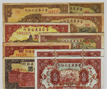 晉察冀抗日根據(jù)地,是中國(guó)共產(chǎn)黨在抗日戰(zhàn)爭(zhēng)時(shí)期于敵后開創(chuàng)的第一個(gè)抗日根據(jù)地。晉察冀邊區(qū)政府于1938年2月成立晉察冀邊區(qū)銀行,在山西五臺(tái)縣石咀鄉(xiāng)的普濟(jì)寺內(nèi)開始營(yíng)業(yè)。邊區(qū)銀行的貨幣發(fā)行后,清除了地方發(fā)行的各種鈔票,統(tǒng)一了邊區(qū)的貨幣市場(chǎng),支持了抗日戰(zhàn)爭(zhēng),支持了生產(chǎn),改善了人民生活,深受抗日根據(jù)地軍民的歡迎。晉察冀邊區(qū)票當(dāng)時(shí)在山西、河北、察哈爾省、熱河省以及遼寧西部、內(nèi)蒙古、山東德州地區(qū)等敵后抗日根據(jù)地流通,流通人口達(dá)3000多萬(wàn)人。直到1948年晉察冀邊區(qū)銀行與冀南銀行合并,成立華北銀行,晉察冀邊區(qū)票才停止流通使用。