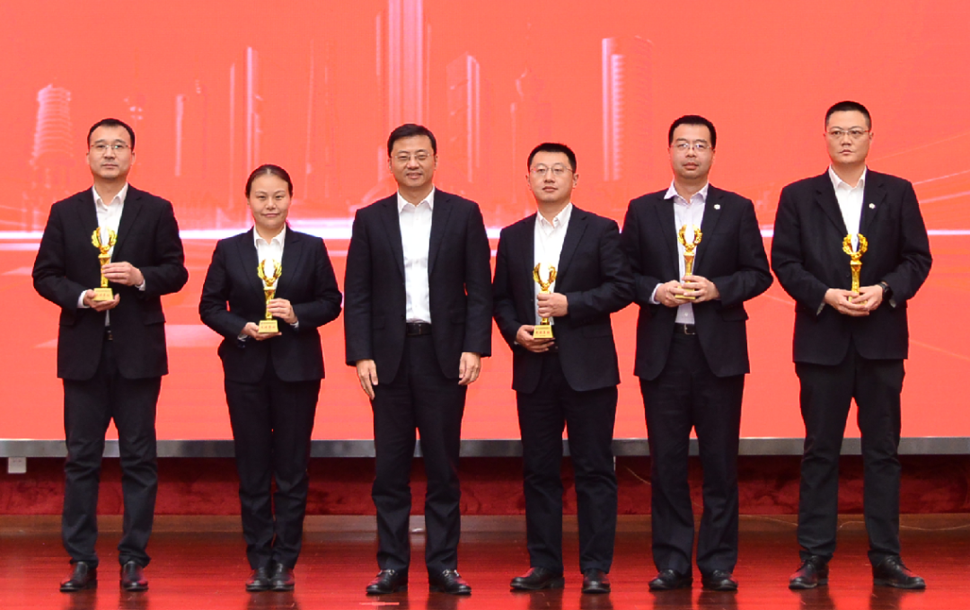 ▲董事長(zhǎng)徐敏俊(左三)為5個(gè)先進(jìn)集體頒獎(jiǎng)