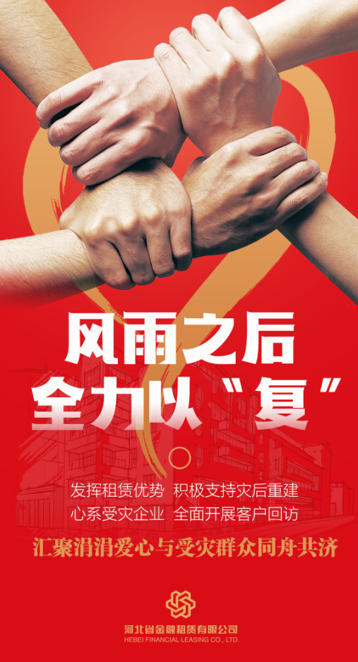 風(fēng)雨之后,是災(zāi)后重建的關(guān)鍵時(shí)期。河北省金融租賃有限公司(以下簡(jiǎn)稱“河北金租”或“公司”)全力落實(shí)各級(jí)政府及監(jiān)管部門的決策部署,及時(shí)出臺(tái)針對(duì)性政策,迅速投身災(zāi)后重建工作,積極幫助受災(zāi)地區(qū)企業(yè)解難紓困,以實(shí)際行動(dòng)踐行金融工作的政治性、人民性。
