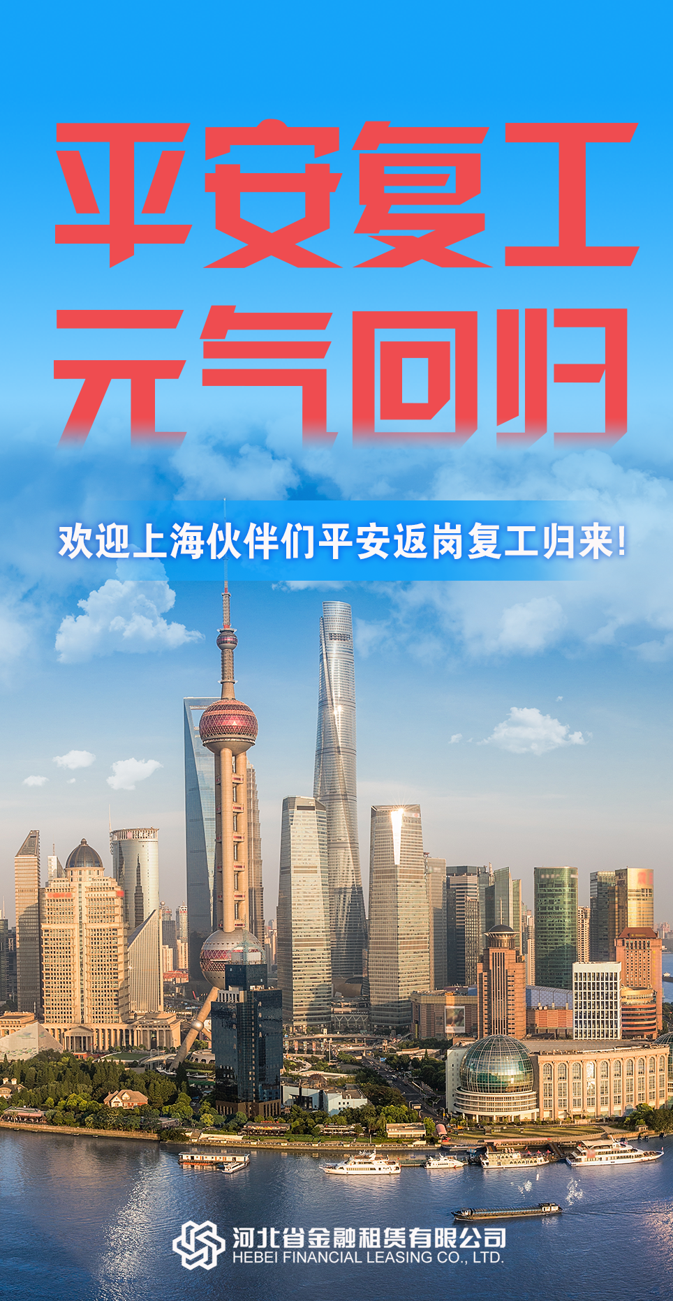 初夏降臨,上海于6月1日迎來有序復(fù)工復(fù)產(chǎn)復(fù)市。 兩個(gè)多月來,上海區(qū)域的河北金租人嚴(yán)格做好疫情防控,居家完成工作任務(wù),穩(wěn)定提供金融服務(wù)。 今天,歡迎大家平安歸來,重新投入業(yè)務(wù)一線! …